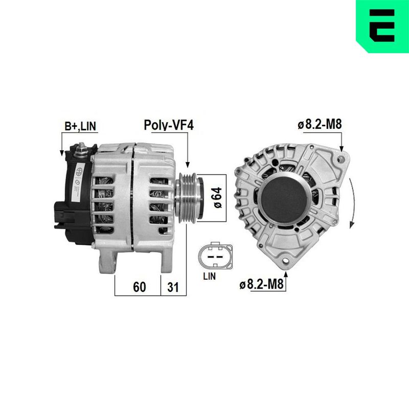 Tensión [V]: 14 Corriente de carga alternador [A]: 200 Restricción de fabricante: Always Cross by OE ID del modelo de conector: 0238 Número de nervaduras: 4 poleas - Ø [mm]: 64 Pinza: LIN2 Pinza: M8 B+ Poleas: con polea de rueda libre Modelo red de a bordo: para vehículos con red de a bordo 12V Nº art. de accesorio recomendado: ZN5816 Diámetro de orificio 1 [mm]: 8,2 Diámetro de orificio 2 [mm]: 8,2 Distancia de polea a alternador [mm]: 31 peso neto [kg]: 7,3
