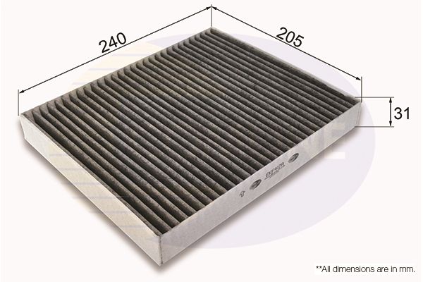 Tipo de filtro: Filtro de carbón activado Longitud [mm]: 240 Ancho [mm]: 205 Altura [mm]: 31