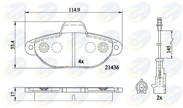Sistema de frenos: BENDIX Número de indicadores de desgaste [por eje]: 2 Ancho [mm]: 55,4 Espesor [mm]: 17 Número de WVA: 21436 Contacto avisador de desgaste: con contacto avisador de desgaste Longitud [mm]: 114,9