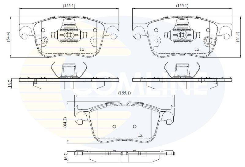 Sistema de frenos: ATE Ancho [mm]: 64,3 Espesor [mm]: 16,7 Número de WVA: 20556 Contacto avisador de desgaste: con avisador acústico de desgaste Longitud [mm]: 155,3