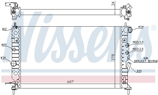 Material aletas refrigeradoras: Aluminio Profundidad de red [mm]: 34 Longitud de red [mm]: 607 Ancho de red [mm]: 378 Diámetro de entrada [mm]: 34 Diámetro de salida [mm]: 34 Tipo radiador: Aletas refrigeración unidas mecánicamente Artículo complementario/Información complementaria: con juntas Material depósitos de agua (radiador): Plástico